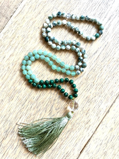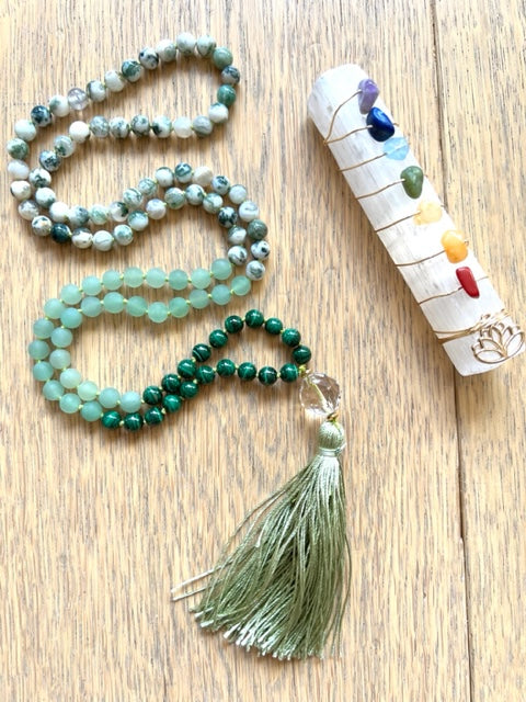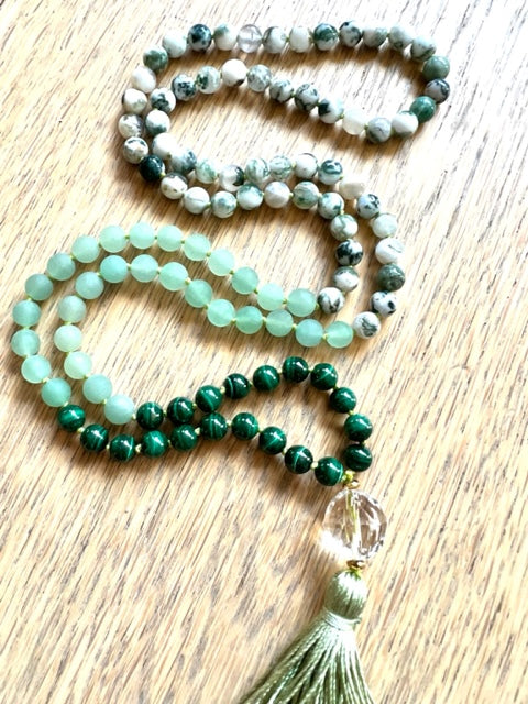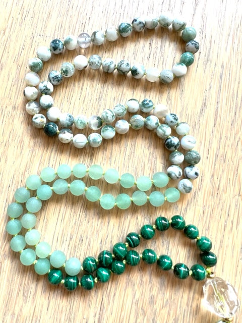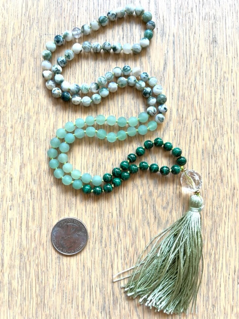 Manifesting Abundance Mala, Tree Agate, Aventurine, Malachite and Quartz
