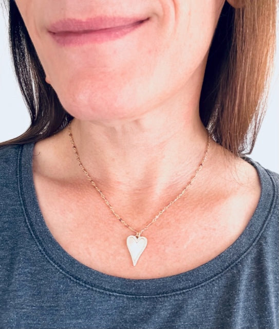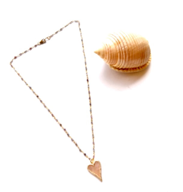 Heart Necklace, Pink Mother of Pearl, Spinel and Cubic Zirconia