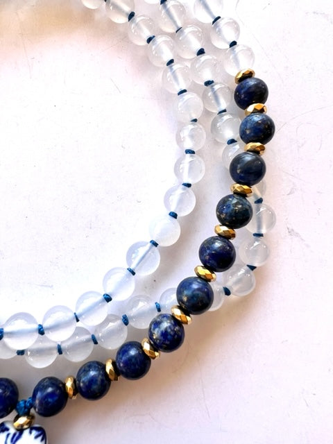 Higher Consciousness Mala, Lapis Lazuli, White Agate and Hematite