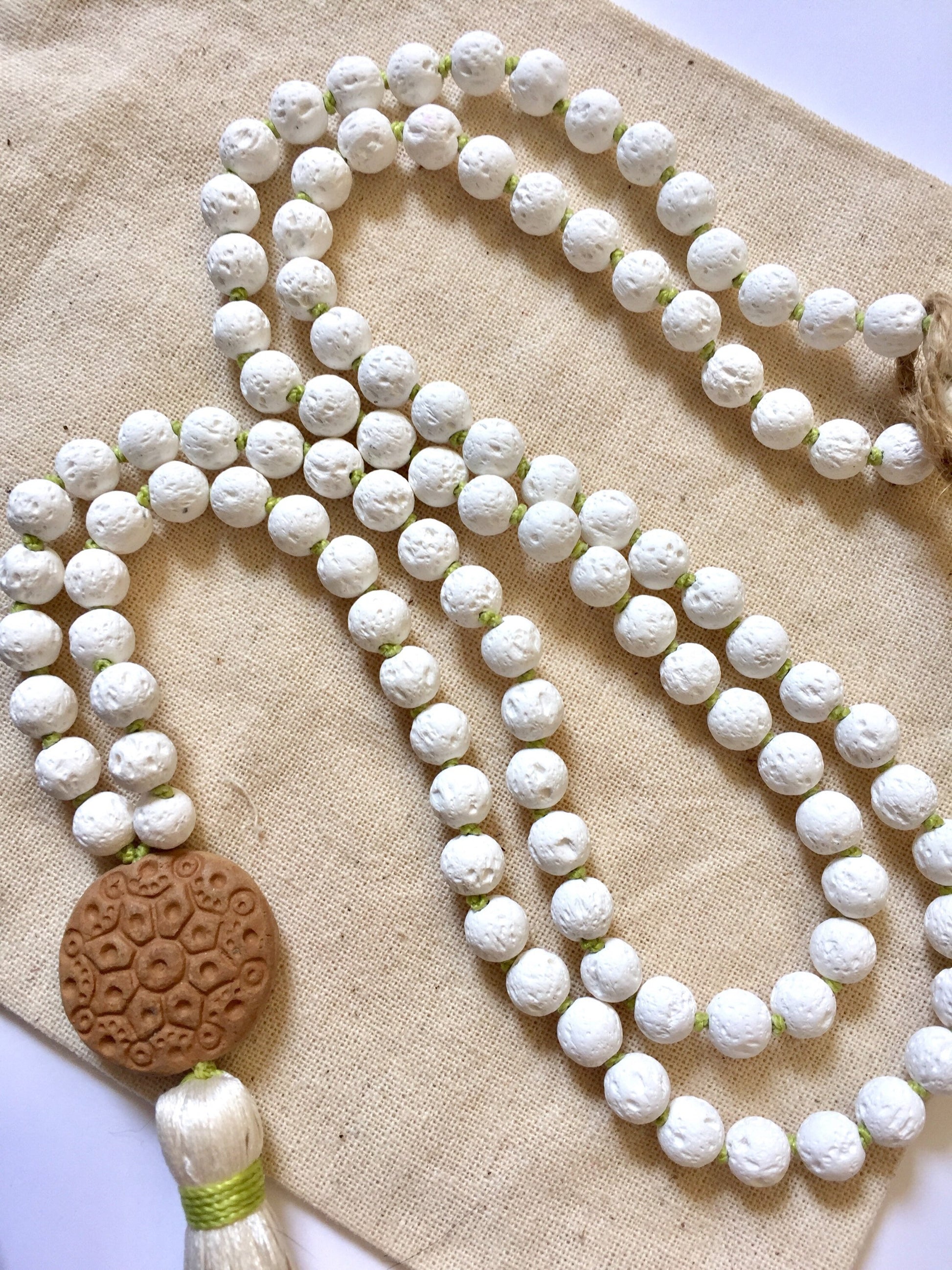 The Mala for Grounding, White Lava and Terra-cotta Oil Diffuser Guru Bead