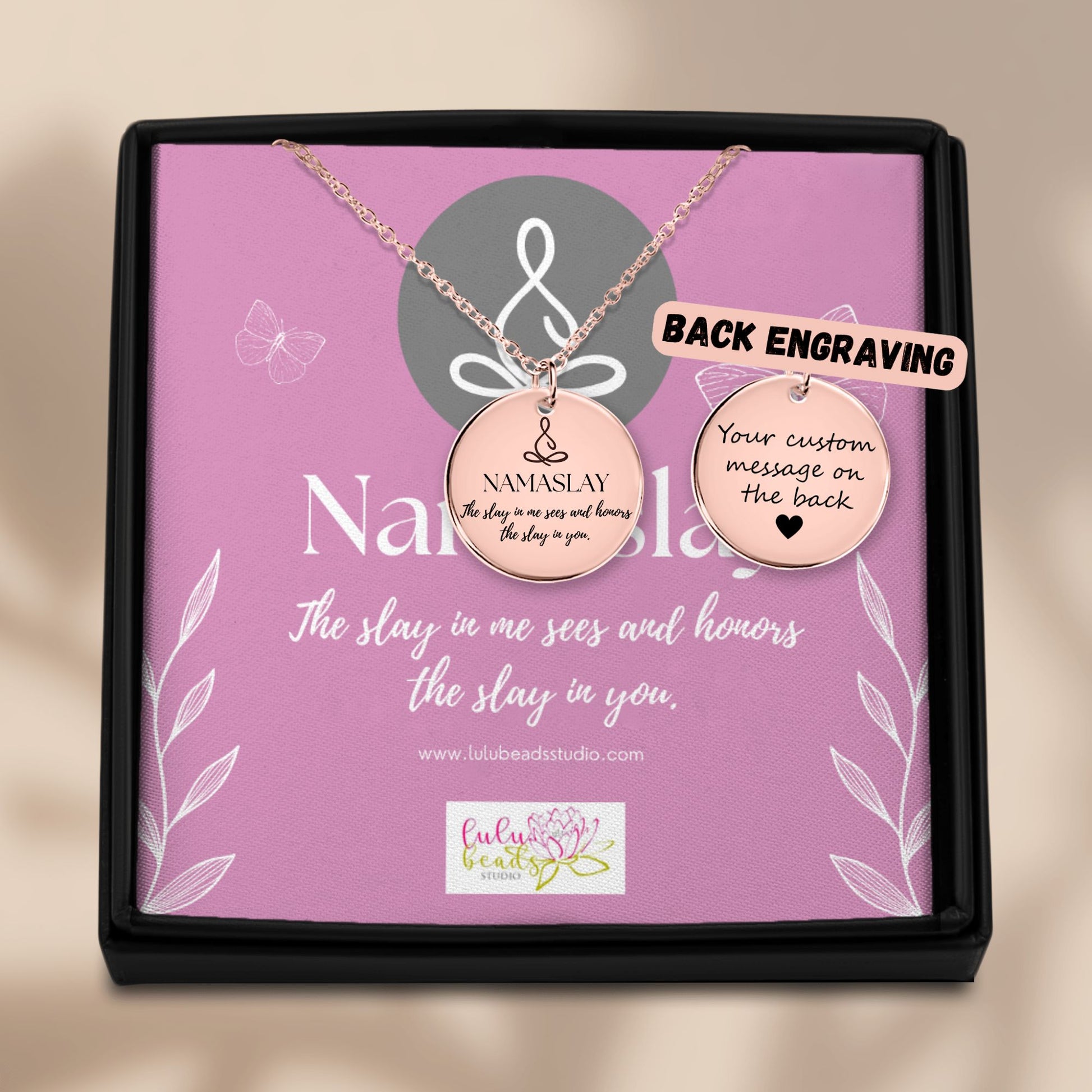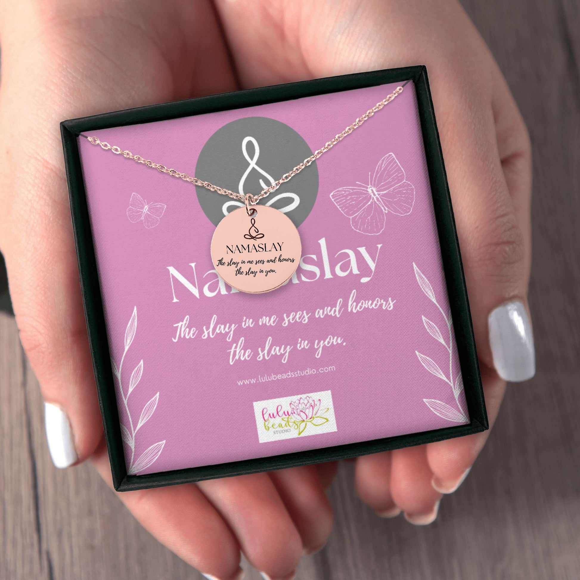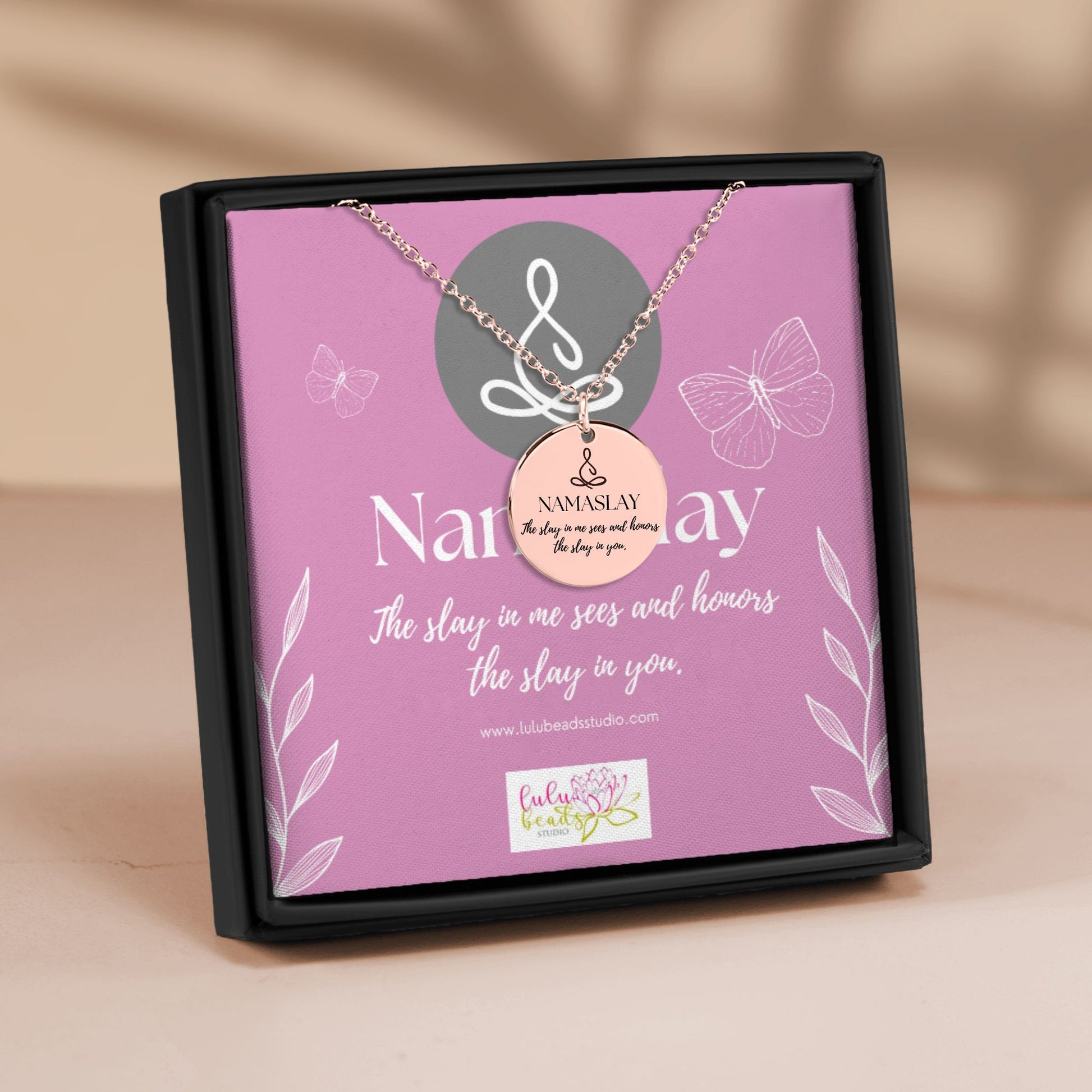 Celebrate your journey and the power of connection with our Namaslay Coin Necklace. Order yours today and wear your mantra proudly!