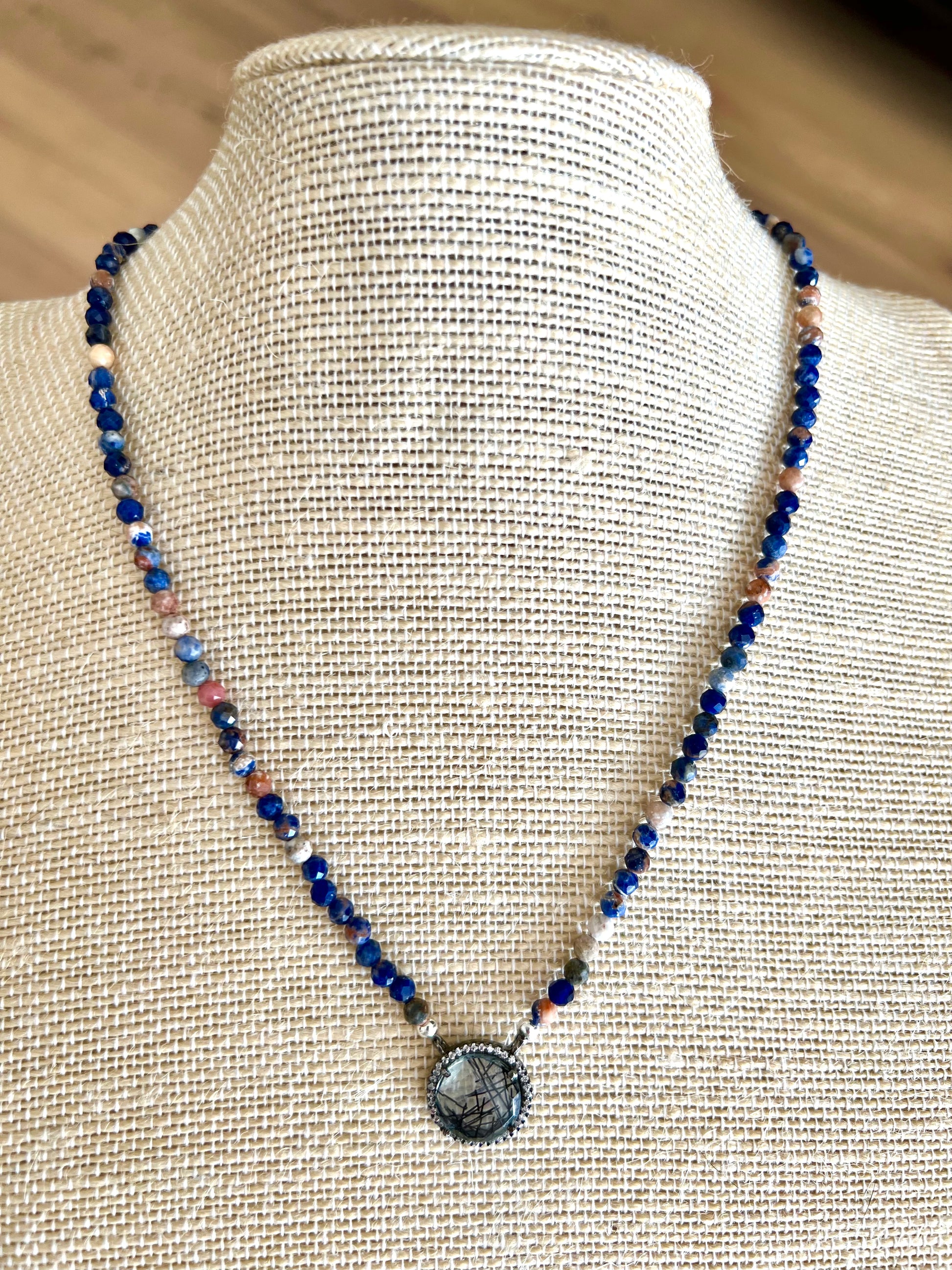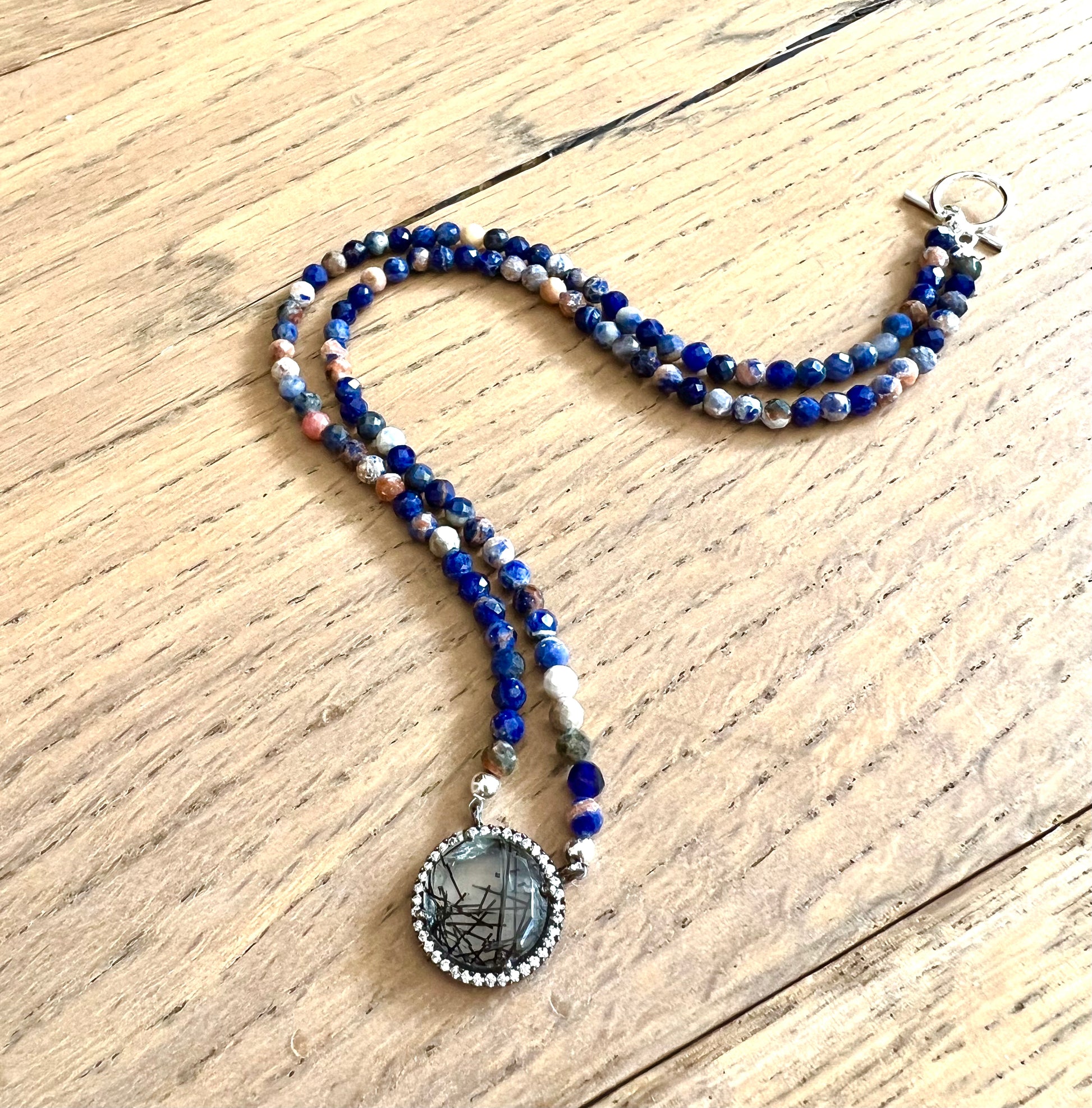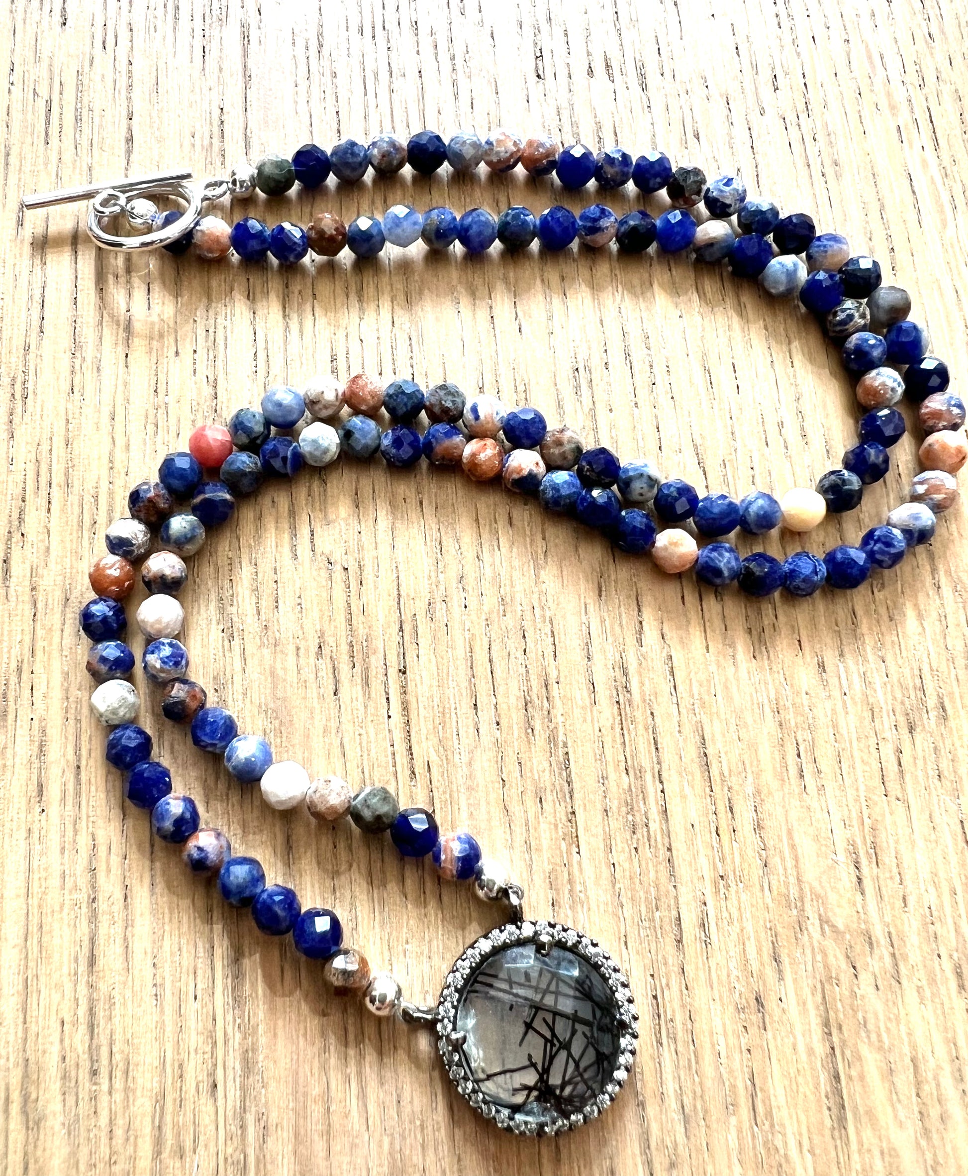 Sodalite and Rutilated Quartz Gemstone Necklace