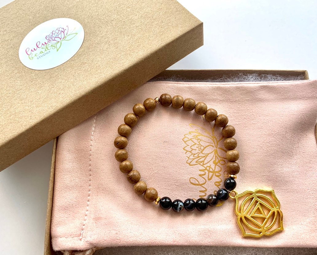 Root Chakra Balancing Bracelet, Sardonyx and Sandalwood