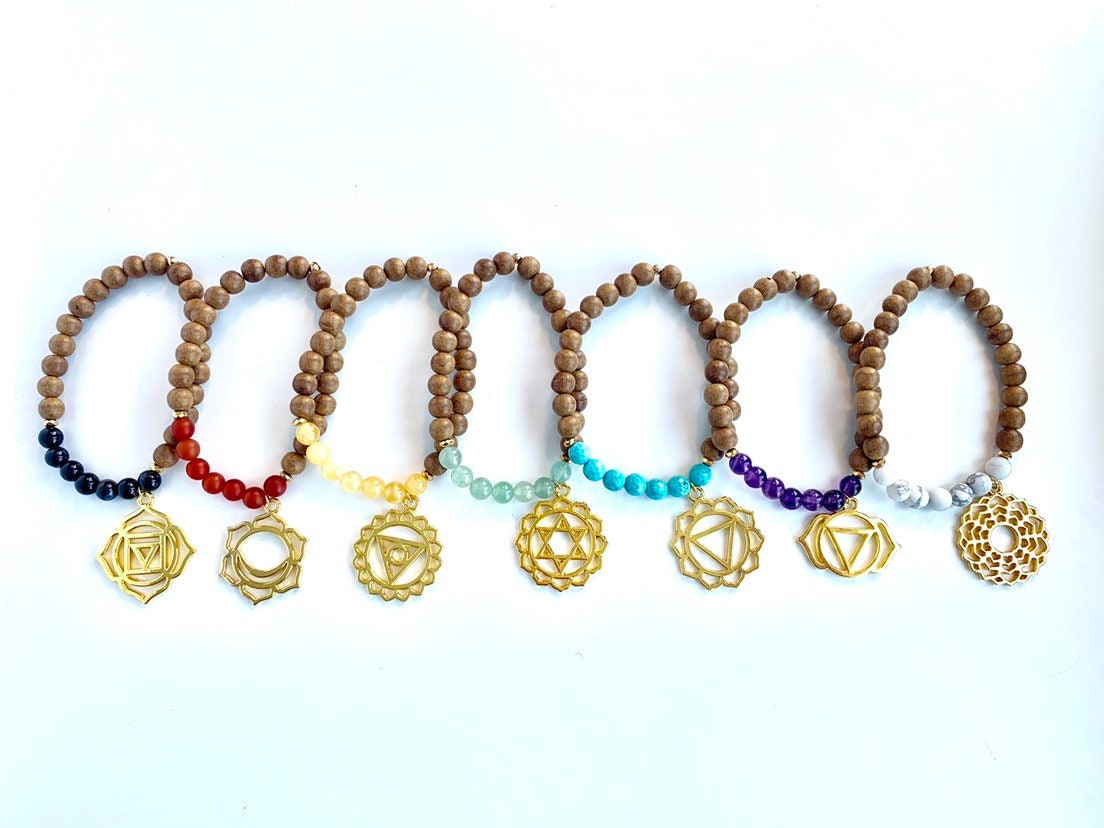 The Third Eye Chakra (Anja in Sanskrit) balancing bracelet is made of beautiful natural Amethyst beads paired with Sandalwood, Chakra charm and gold plated hematite accent beads. The Third Eye Chakra, or 6th Chakra, is the source of intuition and deep wisdom. This Mala style bracelet is handcrafted in our studio with love and intention and designed to be worn as a beautiful accessory and used for meditation. "I Trust Myself" is a powerful Mantra to recite to balance the Third Eye. ~Amethyst is said awaken deep spiritual connection and have healing powers. Associated with The Third Eye Chakra, It is an excellent gemstone for meditation, tuning in to one's self and aiding intuition by calming the mind. ~Sandalwood is both peaceful and soothing, and a traditional choice for Malas. Beautiful Sandalwood is great for meditation and positive vibes. All Lulu Beads Studio Jewelry is cleansed with Sage or Selenite and comes with a beautiful box, pouch and info card on the unique healing energies of the gemstones, all ready for gift giving! 6mm Amethyst beads 6mm Sandalwood beads Third Eye "Anja" gold-toned chakra charm, approximately 30mm 2 gold-plated hematite accent beads Strung on non-latex durable stretch cord 7 inches long, please add a note if a different length is needed (please note, additional length can take an additional 2 weeks)