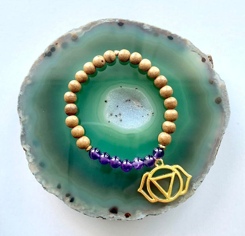 Third Eye Chakra Balancing Bracelet, Amethyst and Sandalwood